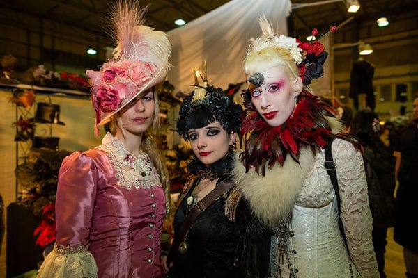 Long vintage gowns, hats with feathers, and corsets are one of the main attributes of the antique Gothic style. It is a no-brainer to understand that they draw inspiration from fashion trends of the past. On the other hand, protective masks and goggles, massive chunk-soled shoes worn by cyber Goths are an appeal to the post-apocalyptic future of our world.