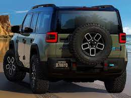 Sul portellone posteriore si nota la ruota di scorta, fissata esternamente — un richiamo diretto al design Jeep classico.