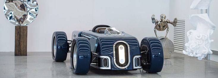 The seamless, flowing shape—free from visible panel gaps—mirrors the sleek streamliner cars and motorcycles of the early 20th century. Long fenders, a low-slung chassis, and an elongated hood emphasize movement, even at rest. Chrome accents highlight the Art Deco inspiration, while the futuristic stance brings the design into the modern era.