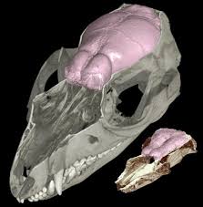 Soft tissues such as brain matter usually decay and do not fossilize. However, the bones of the skull often remain intact, including the region that once enclosed the brain. In many mammals, the olfactory bulbs sit at the front of the brain — and the skull preserves a “mold” or internal cavity called an endocast that reflects the shape and volume the olfactory bulbs once occupied.