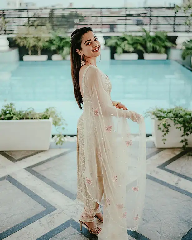 One of the standout aspects of this look was Rashmika’s ability to make simplicity appear luxurious. The off-white shade, combined with the subtle sheen of the fabric, created a visual harmony that spoke of quiet sophistication. By choosing understated accessories and soft makeup, she allowed the craftsmanship of the Chikankari embroidery to remain the focal point, demonstrating her keen sense of style and appreciation for traditional artistry.