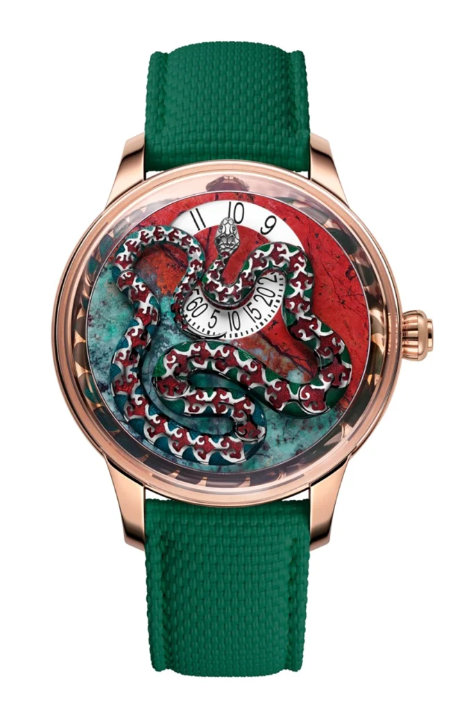 Jaquet Droz transforms the dial into a canvas, allowing the serpent to take center stage.